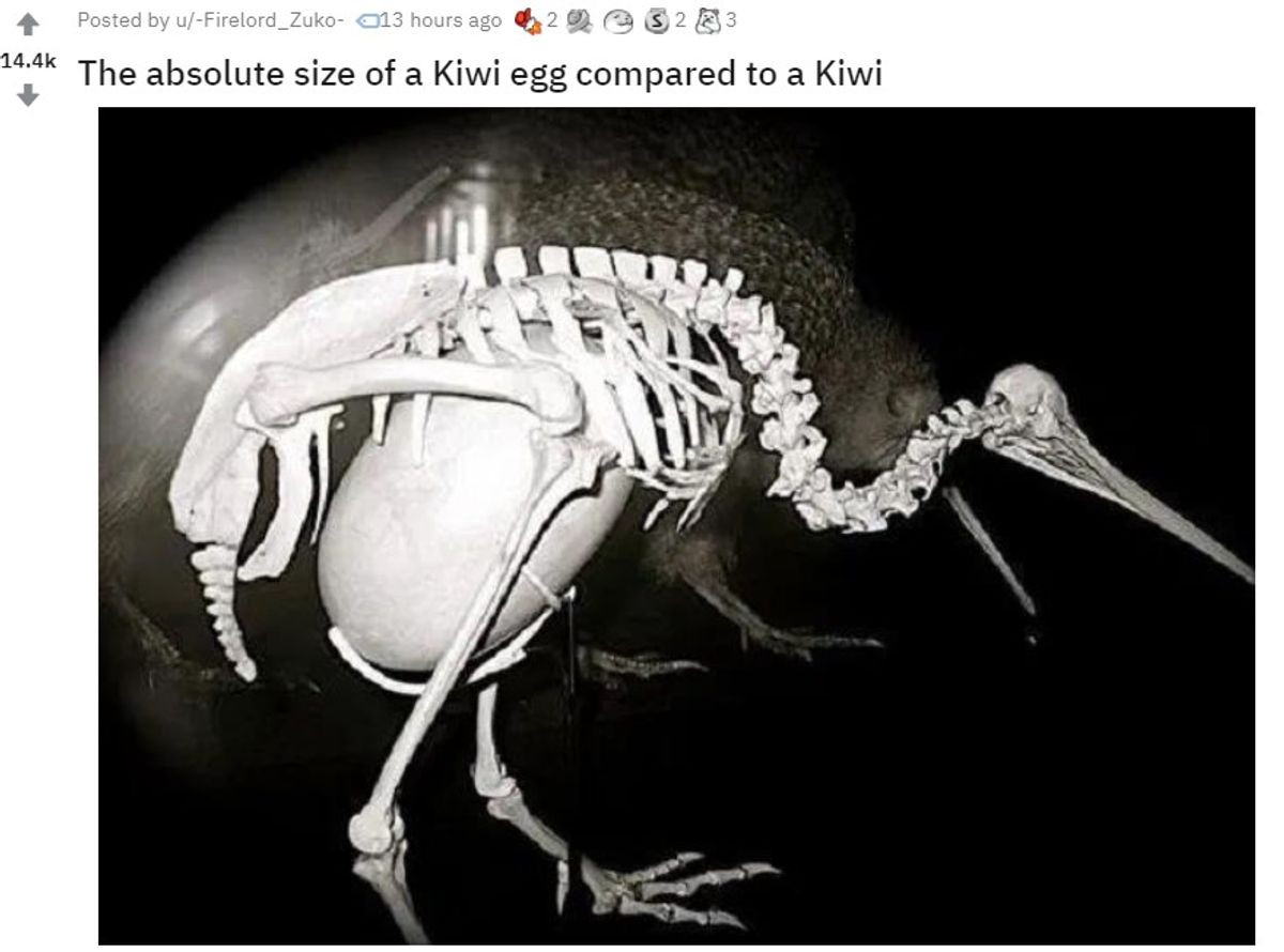 TIL despite their small size, Kiwis produce one of the largest eggs of any bird and can be up to 20% of their body weight. That's comparable to a 120 lb woman giving birth to a 24 lb baby.